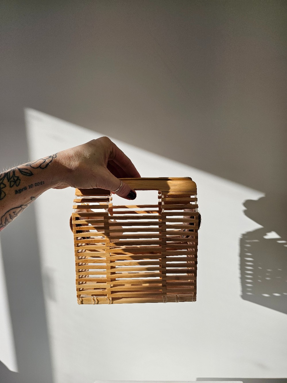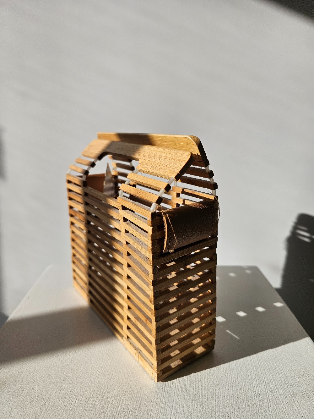 Details: Wooden square purse.