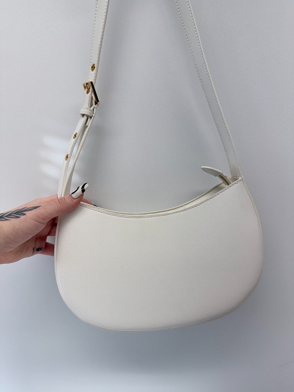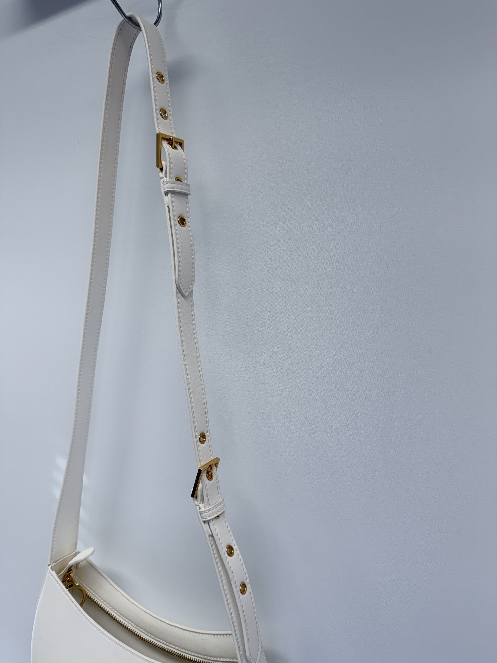 Details: White cresent crossbody purse.
