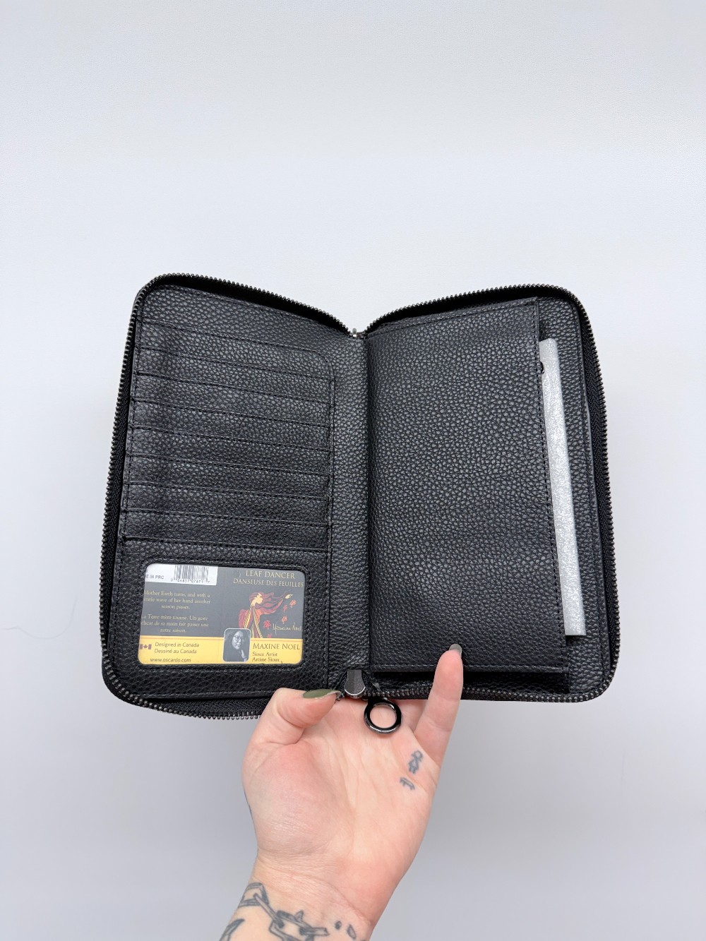 Details: Black, yellow, red and green autumn girl art wallet. New in box!