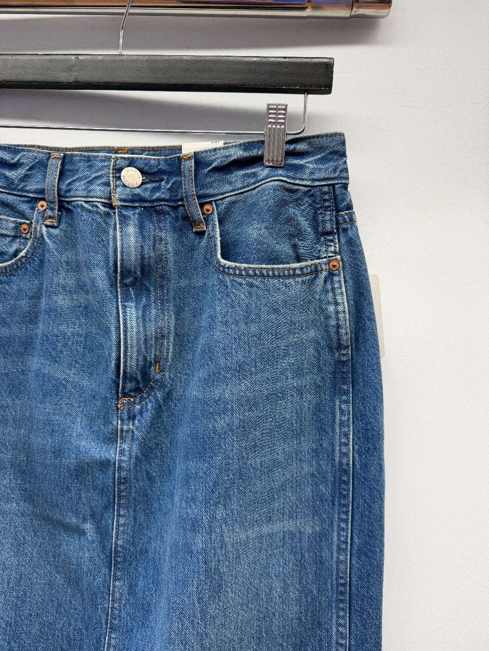 Details: Mid wash denim maxi skirt. New with tags!