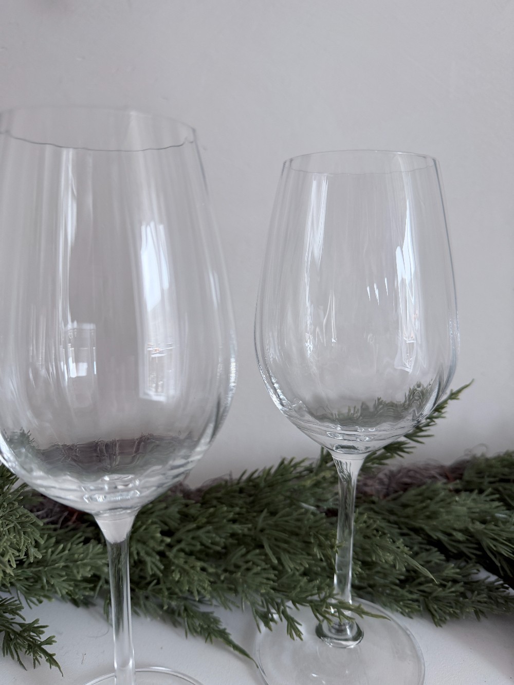 Details: Clear tall ribbed design wine glasses. Set of two.