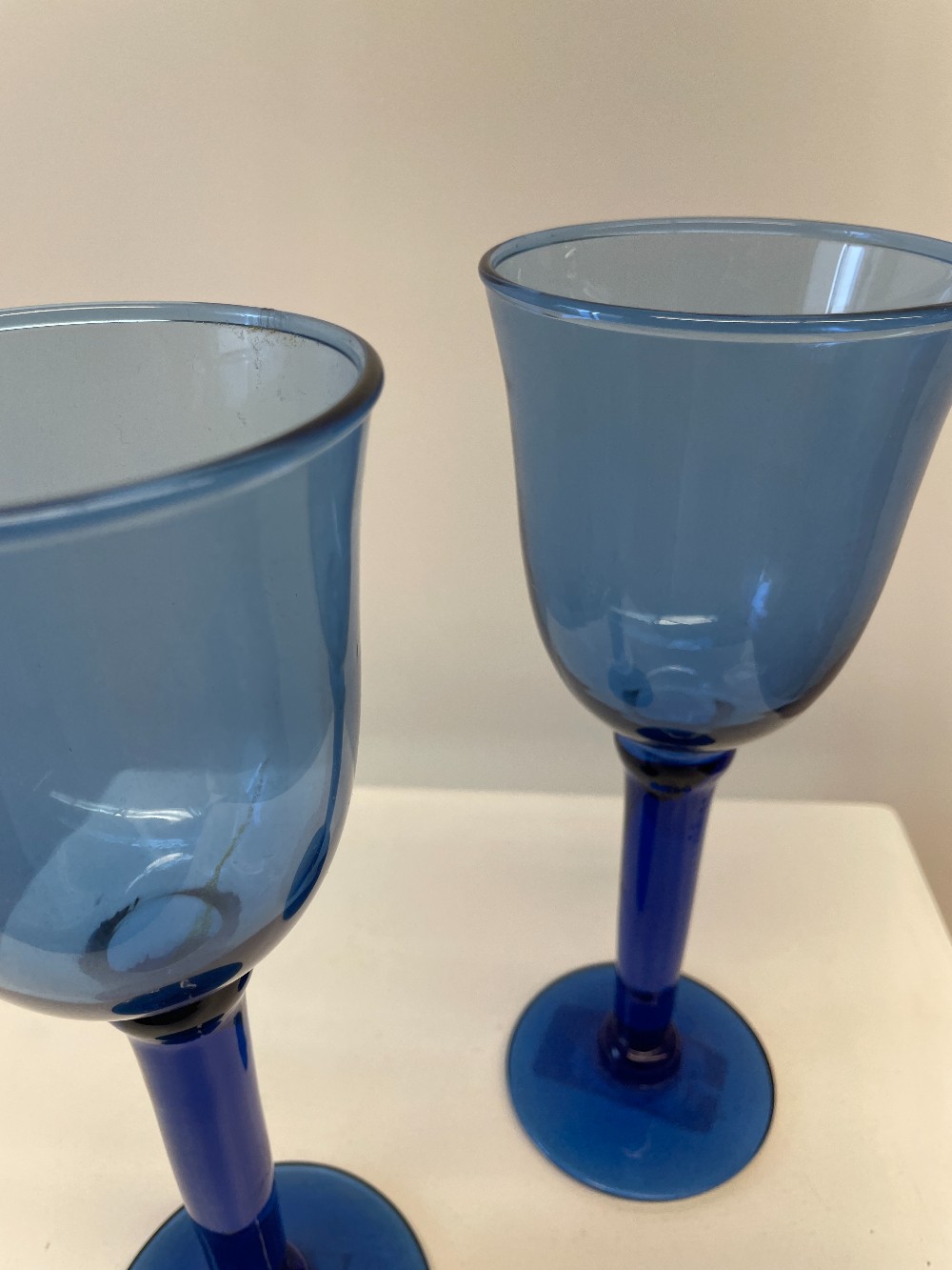 Details: Dark blue wine glasses with thick stems. Set of two.