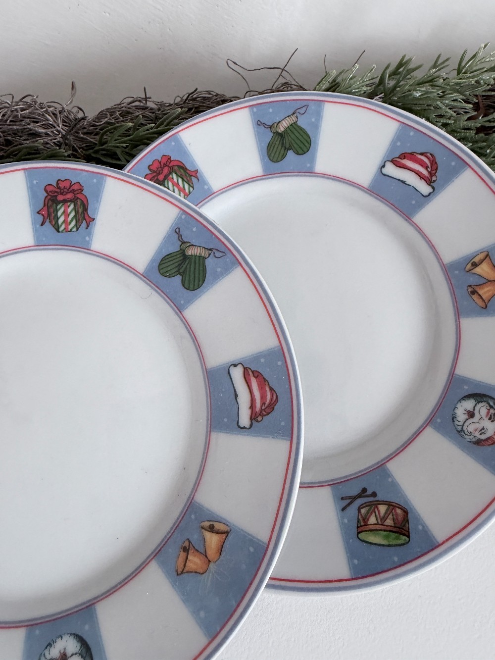 Details: White and blue mini plates with Christmas decal. Set of two.
