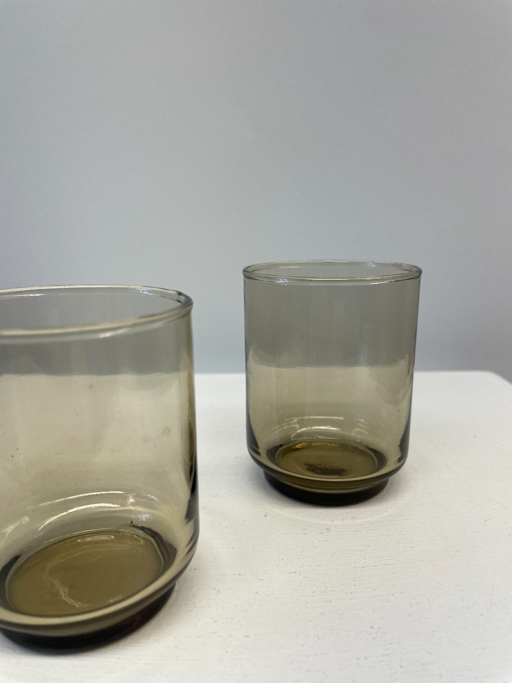 Details: Small smokey glasses. Set of two.