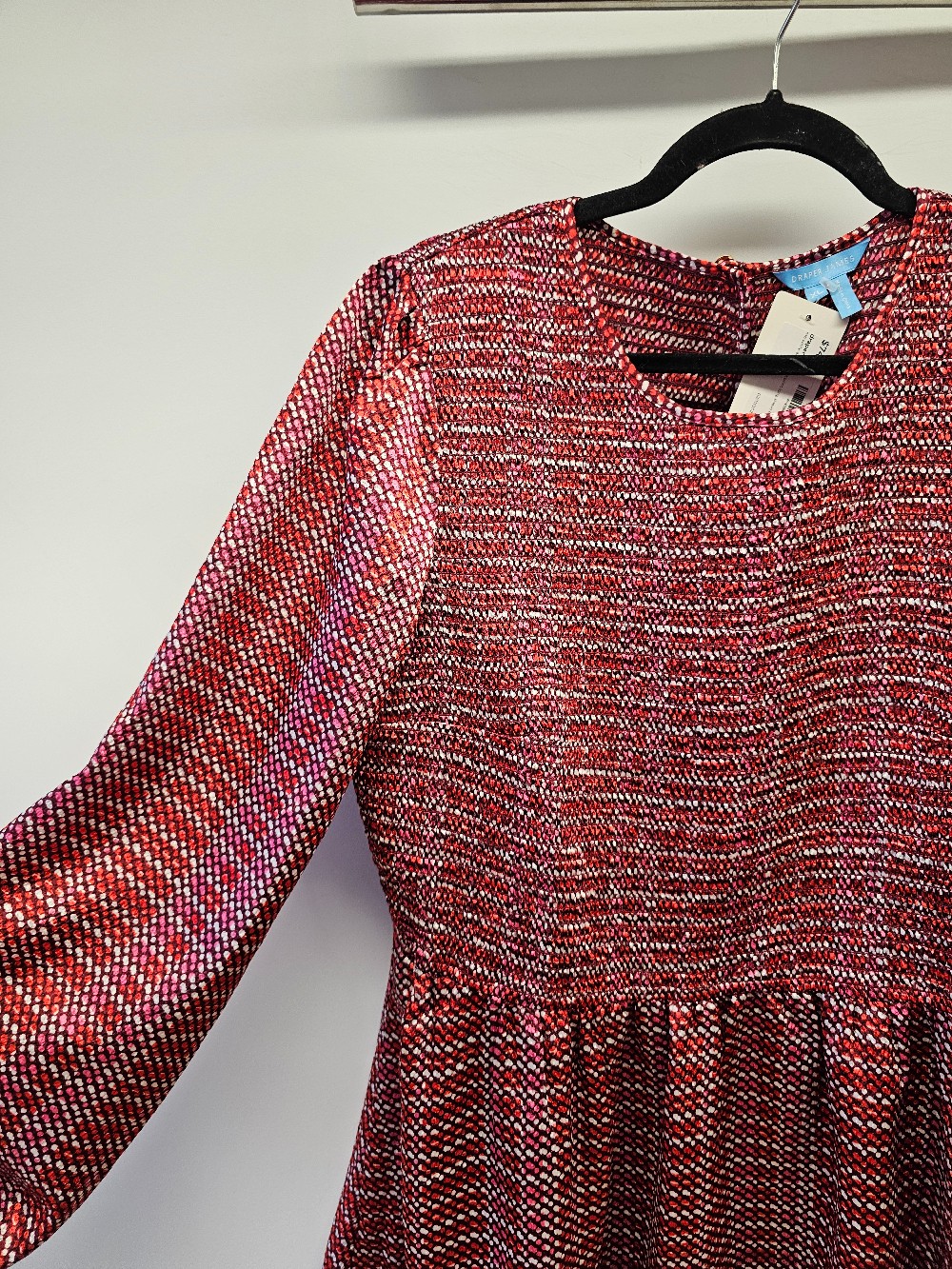 Details: Red white and pink dot print long sleeve dress