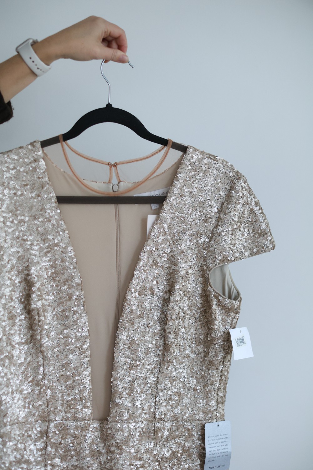Details: Gold sequined and mesh short sleeve dress. New with tags!