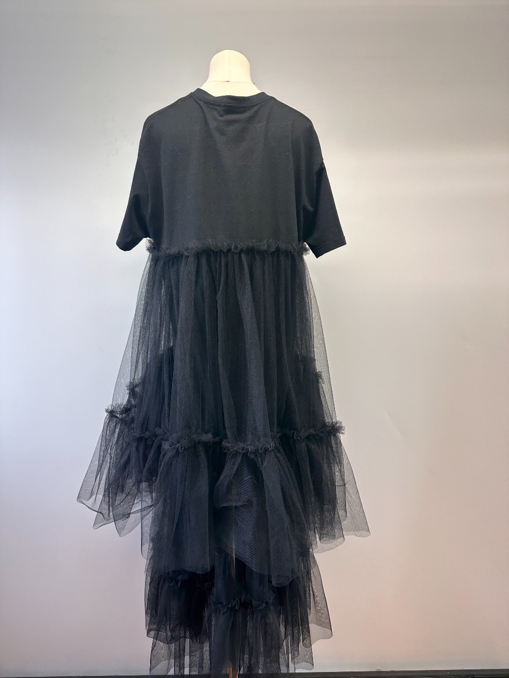 Details: Black short sleeve tiered dress with tulle skirt, New With Tags!