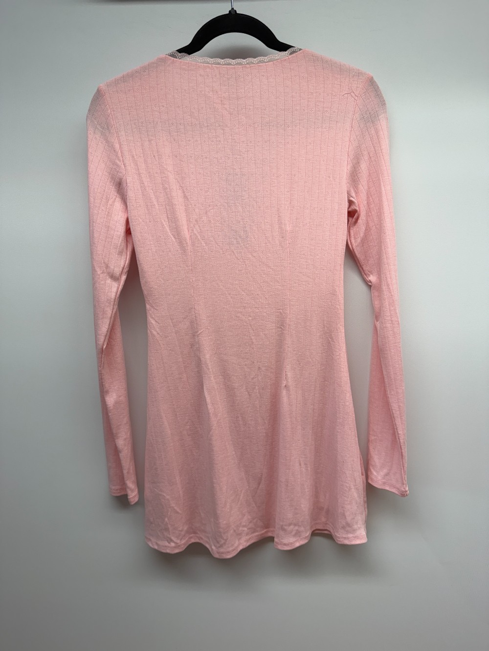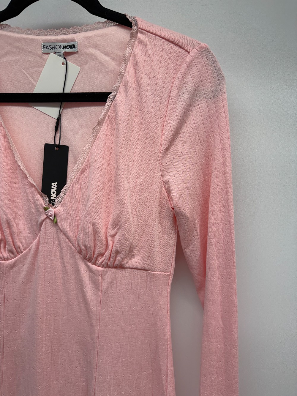 Details: Light pink long sleeve short dress with mini rose detail and lace trim. New with tags!