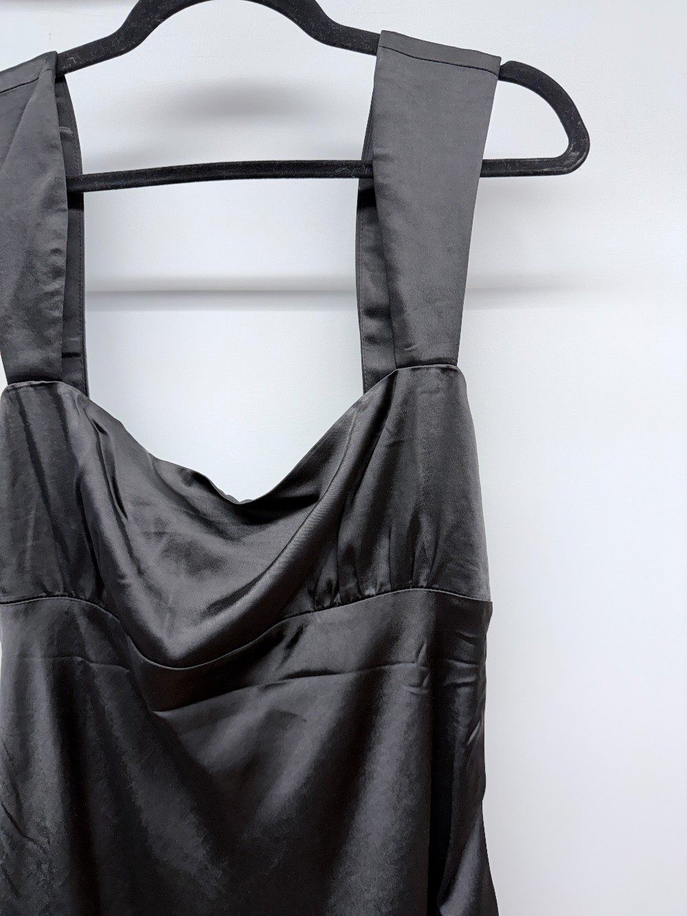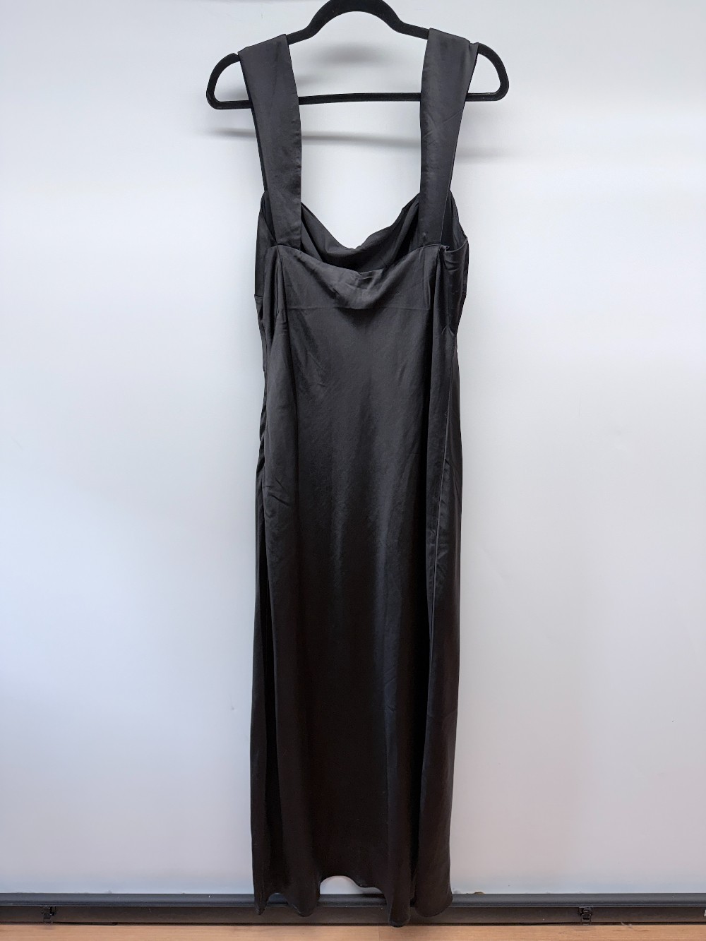 Details: Black satin spaghetti strap maxi dress. New with tags!