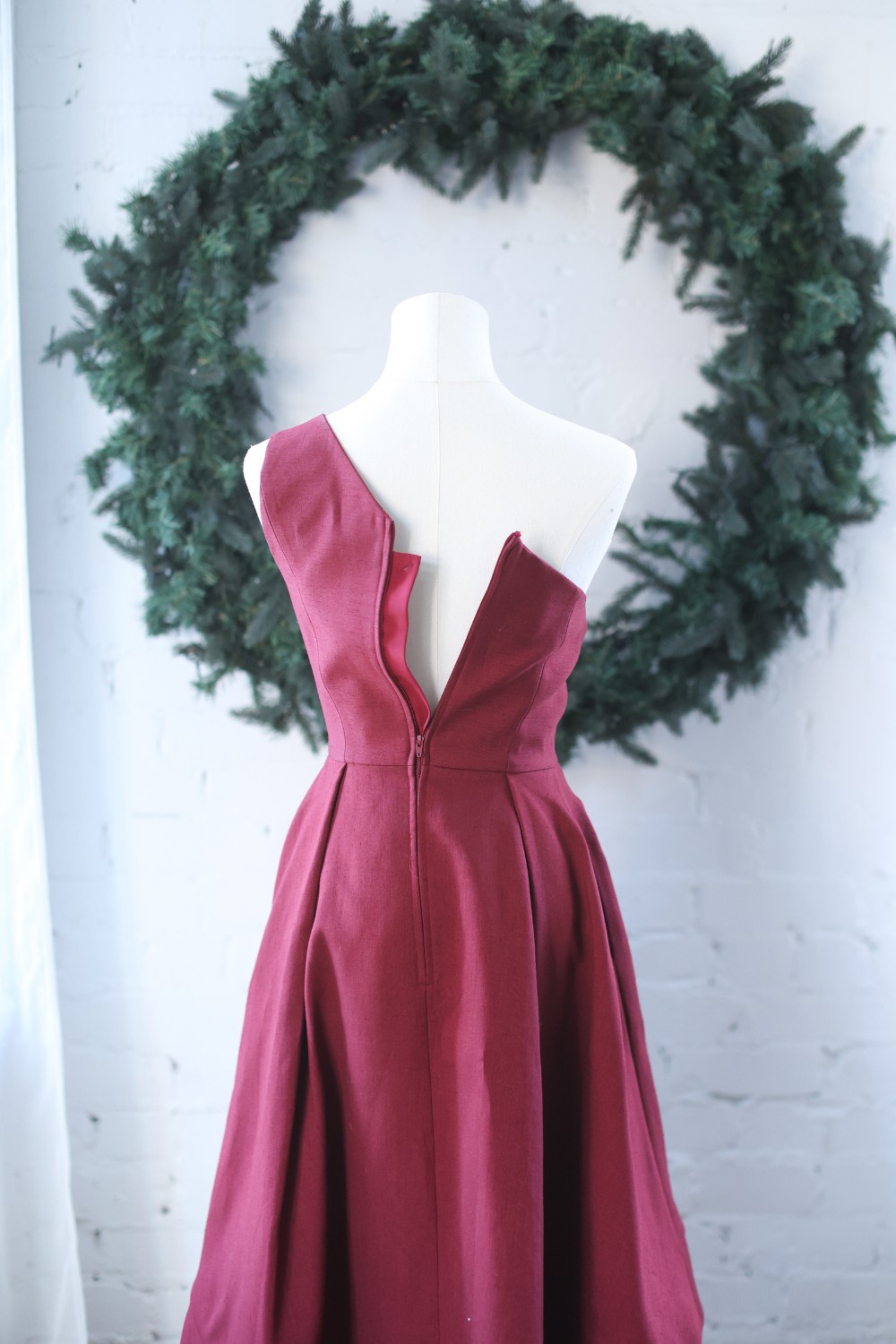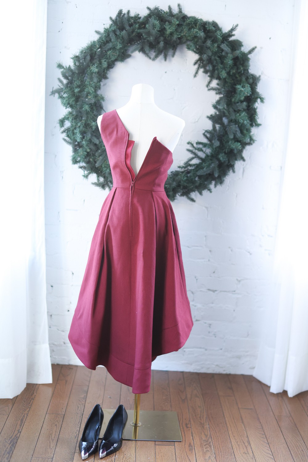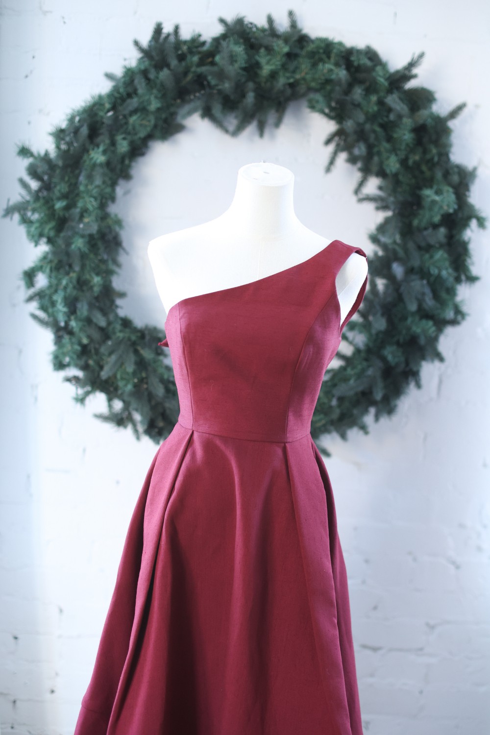 Details: Wine red one shoulder asymmetrical tank dress. Did not fit on mannequin so would best suit an XXS.