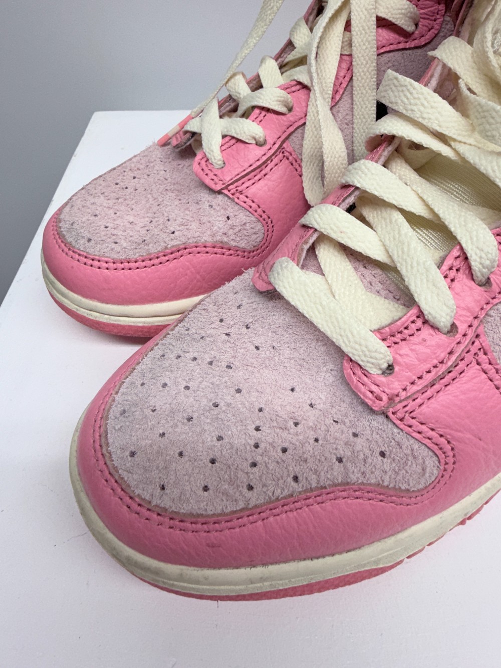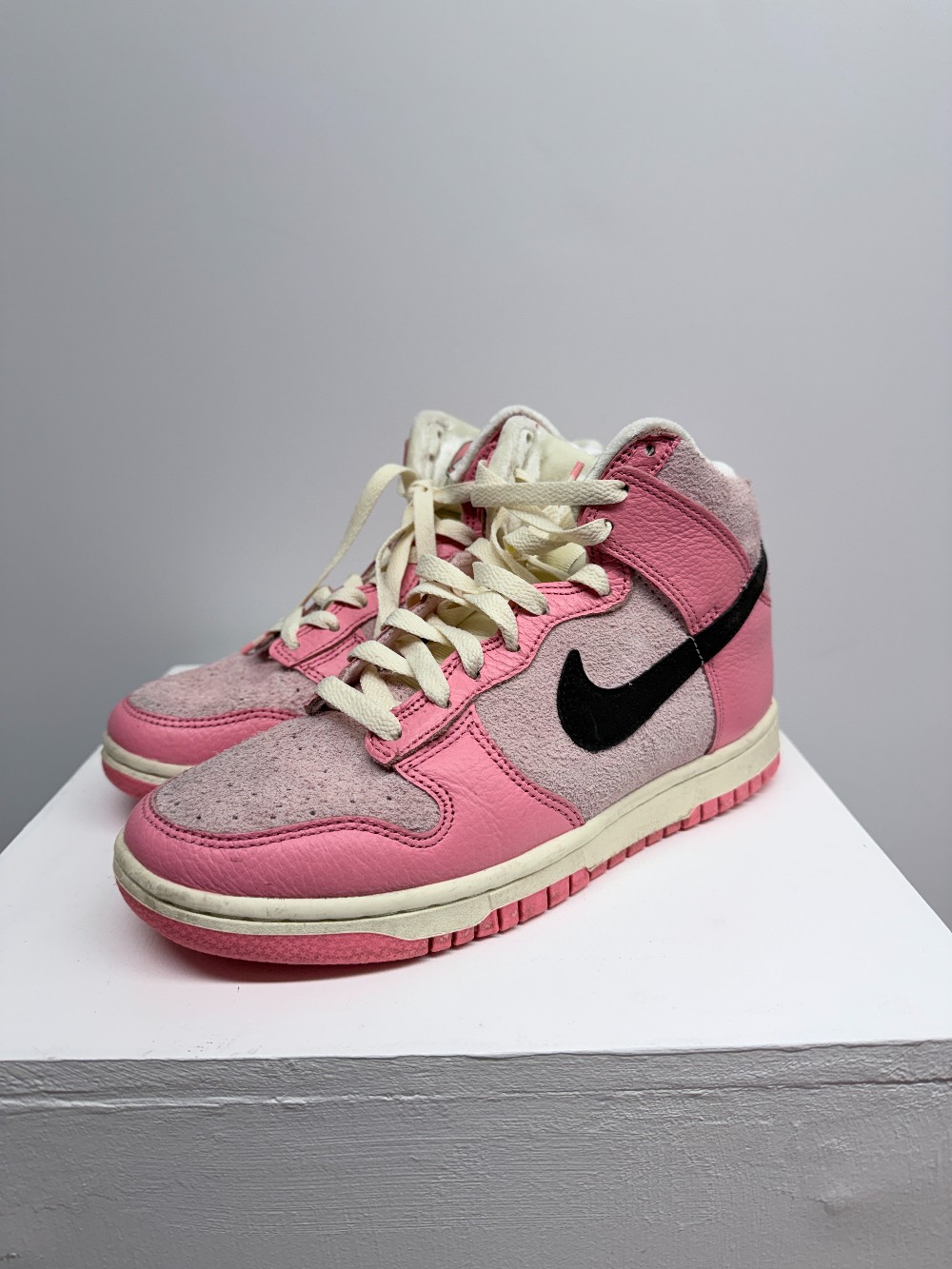 Details: Light pink, cream and black high top Dunks. Comes with orange and pink laces.