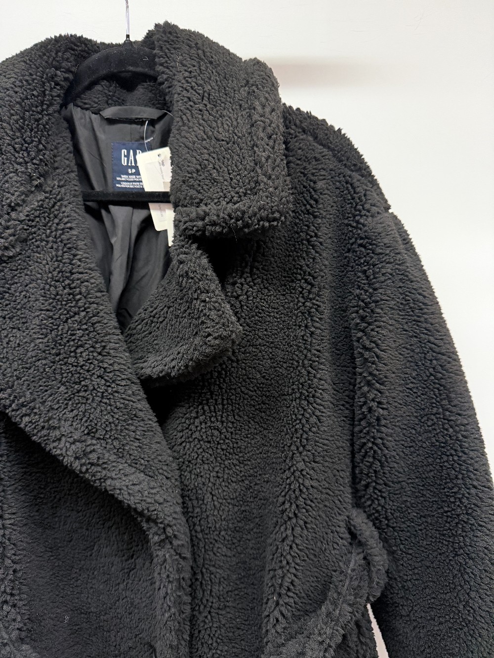 Details: Black teddy bear fleece full length jacket with tie. New with tags!
