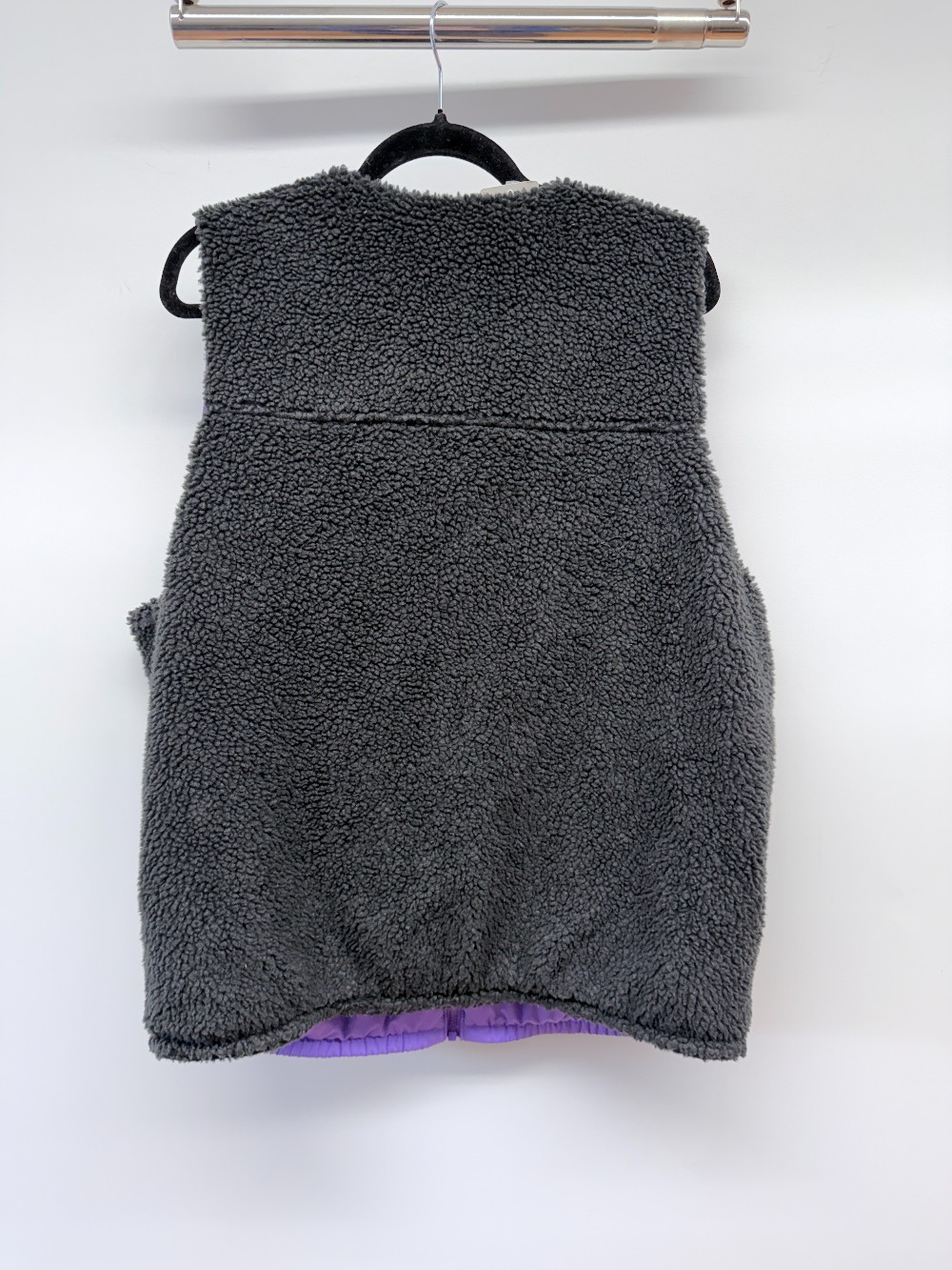 Details: Black and royal purple sherpa zip up vest, reversible!