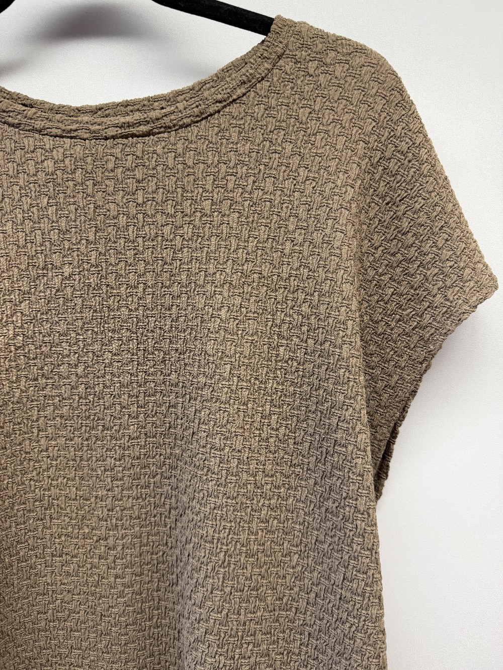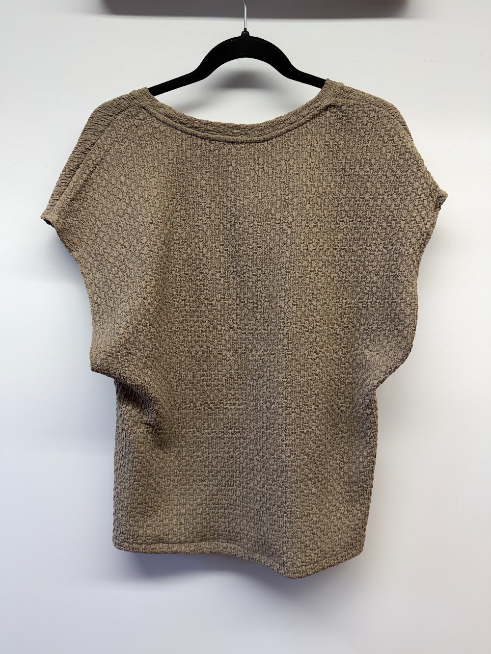 Details: Taupe brown textured sleevless tee.