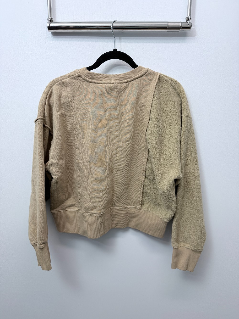 DXetails: Tan brown two fabric crewneck.