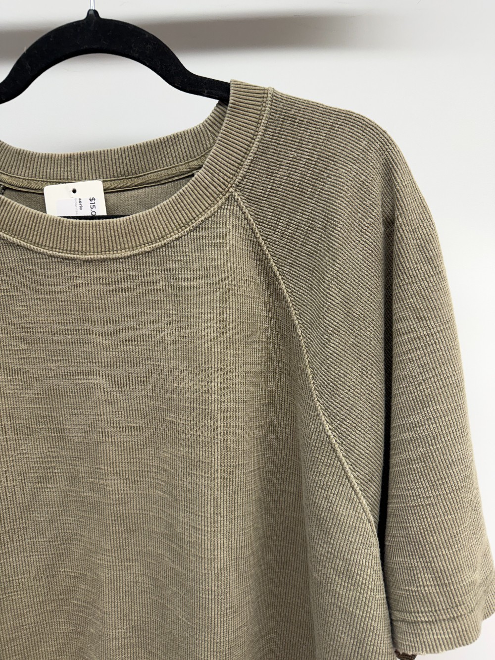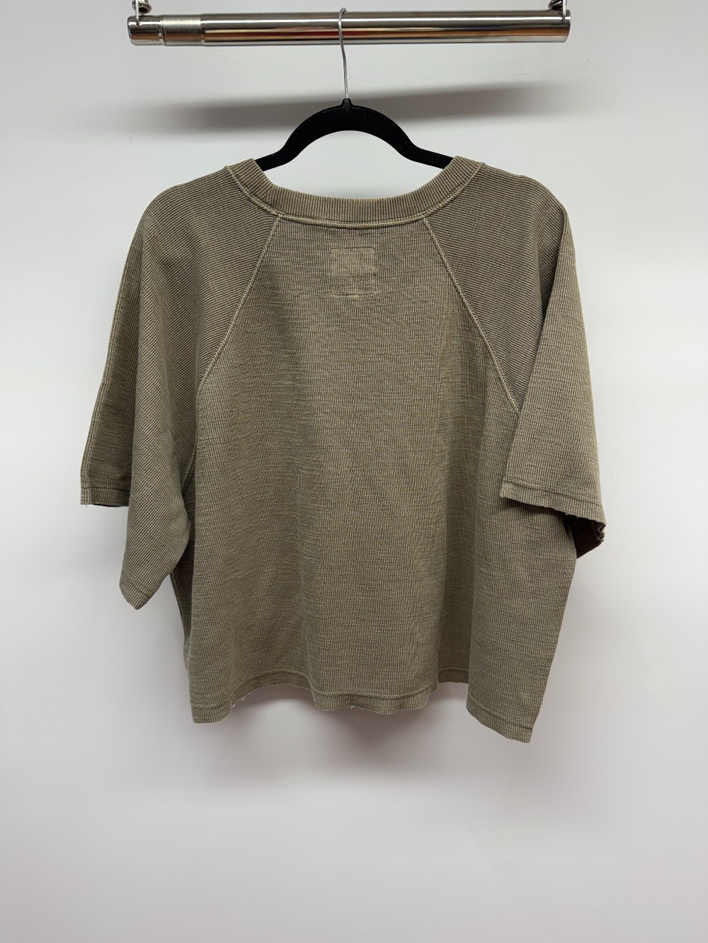 Details: Dull green waffle knit short sleeve tee.