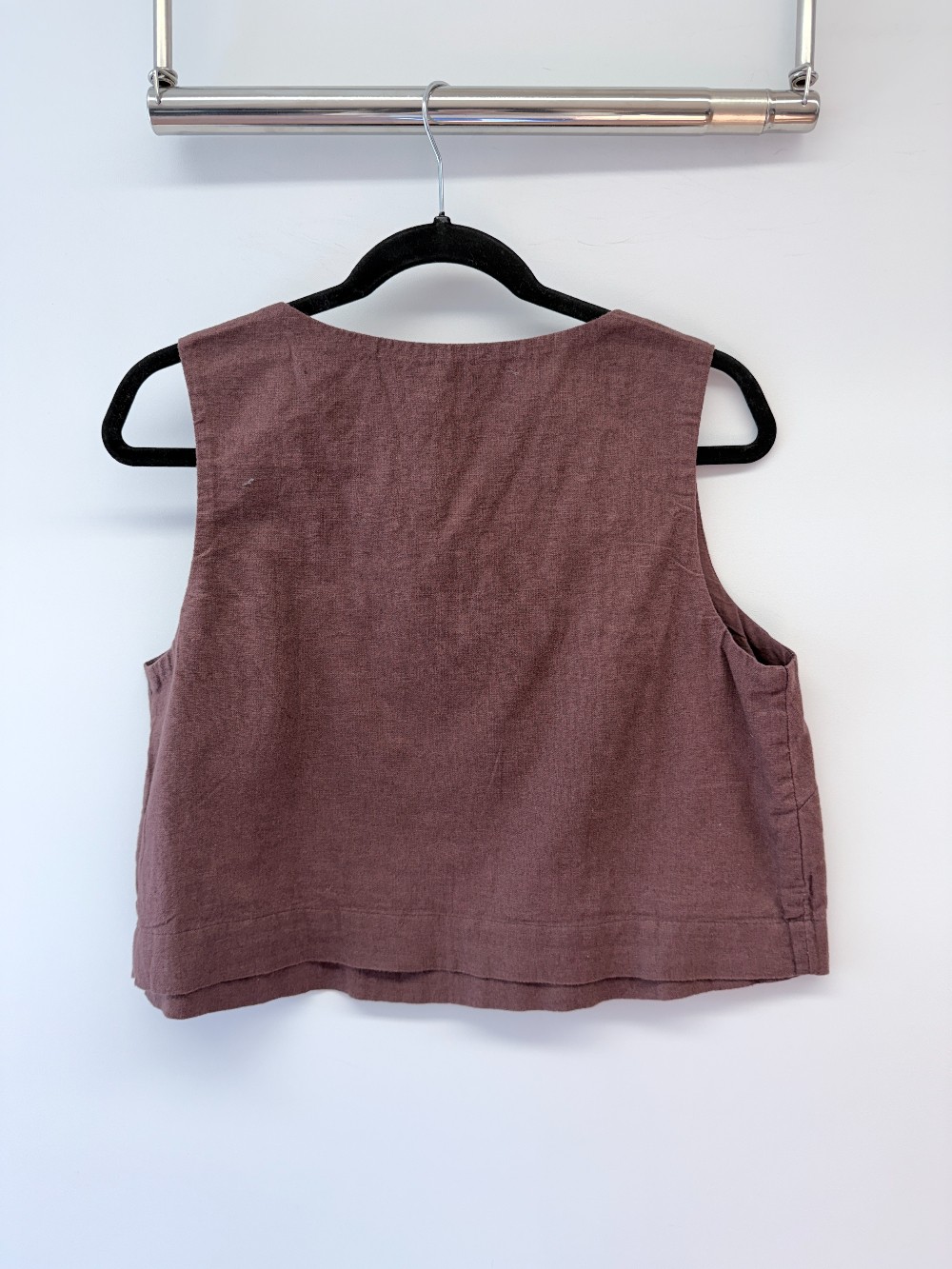 Details: Burnt brown square neckline cropped top.