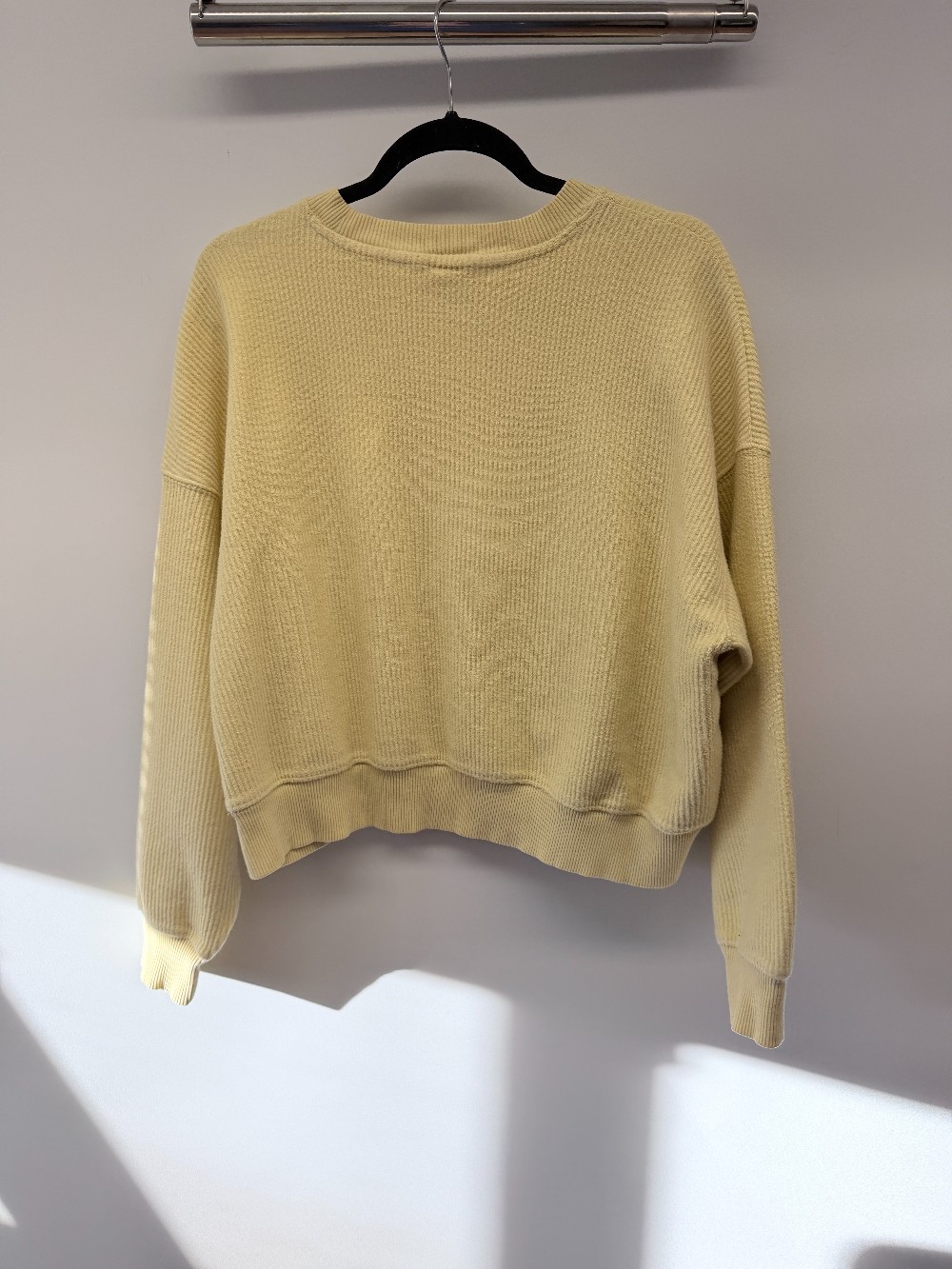 Details: Light yellow ribbed cropped sweater.