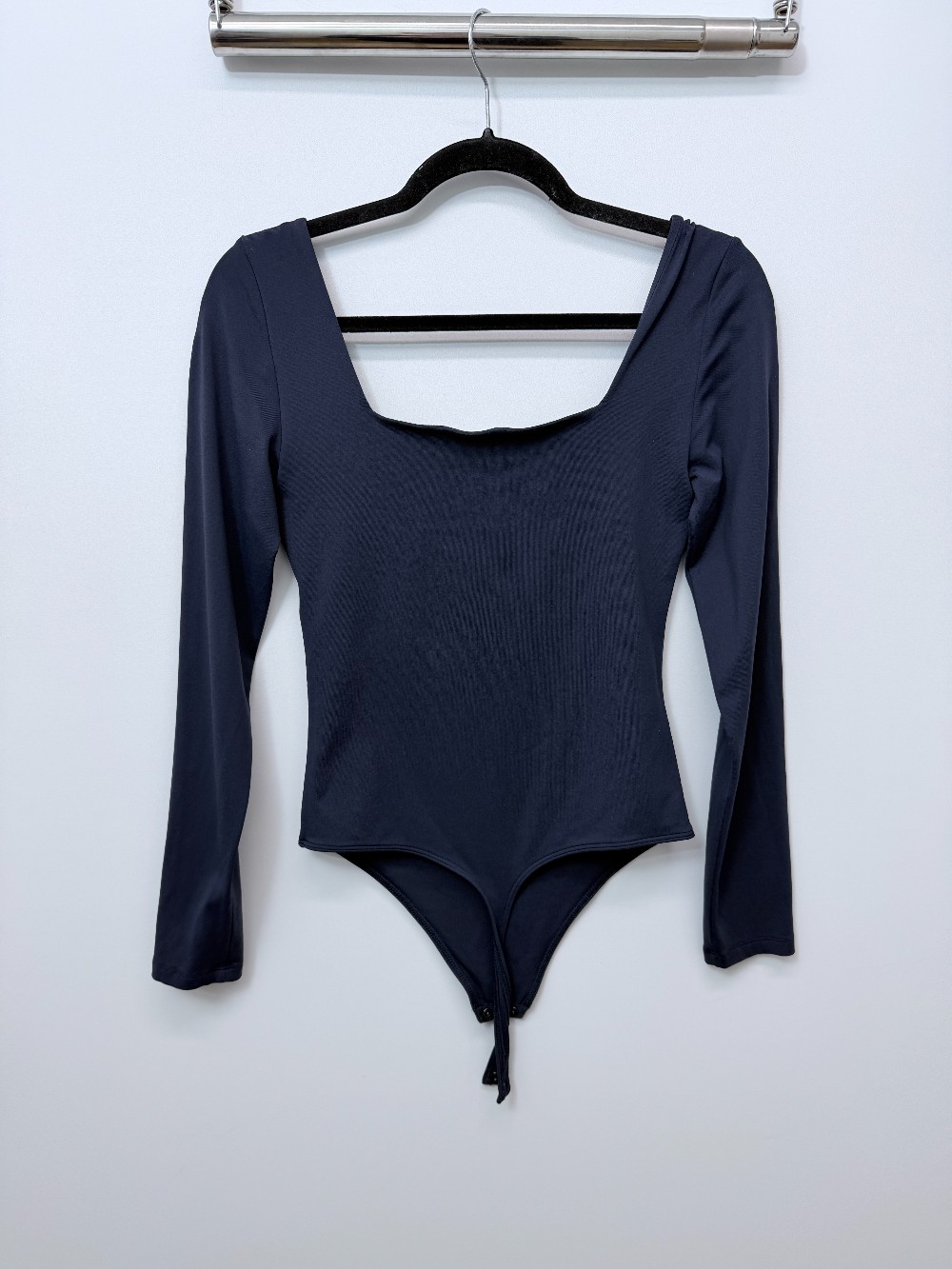Details: Navy long sleeve bodysuit.