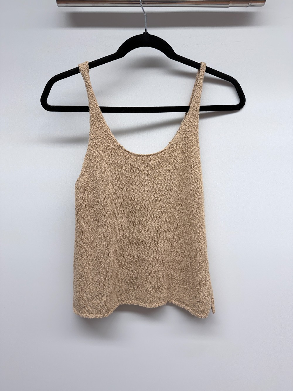 Details: Light brown knit tank. Matching shorts sold seperately.