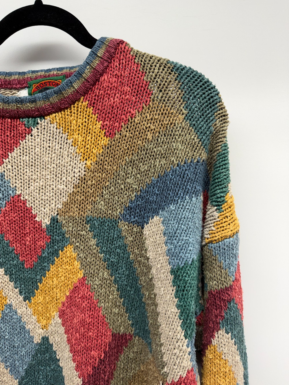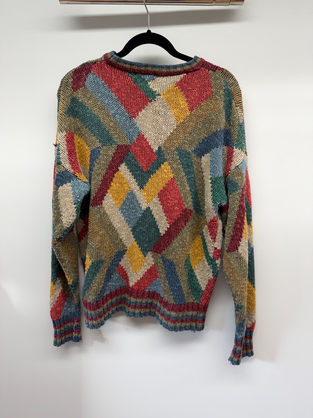 Details: Multi coloured patterned vintage knit sweater.